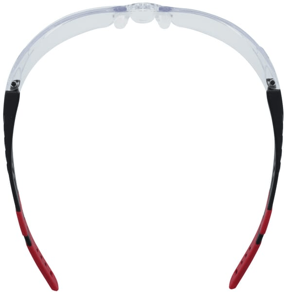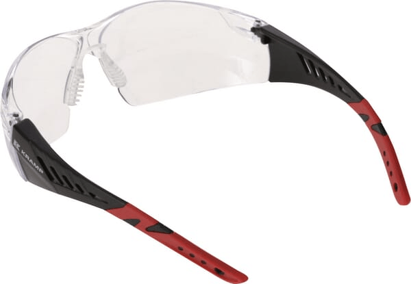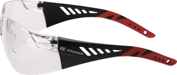 Détails du produit : - Lunettes de sécurité sans monture - Avec branches noires/rouges, lentille transparente et revêtement anti-rayures/anti-buée - Pont de nez flexible pour un ajustement confortable - Les extrémités des branches en caoutchouc injecté offrent une excellente adhérence - Châssis diélectrique et non conducteur - Répond aux exigences CSA Z94.3 pour le Canada - Lentille à courbure de base de 9,75
