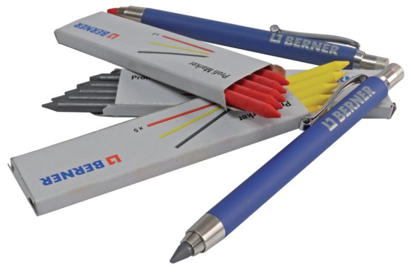 crayon profi-marker avec affuteur intégré livré par jeu de 2 avec un paquet de 5 mines jaune, rouge, graphite (par 1)