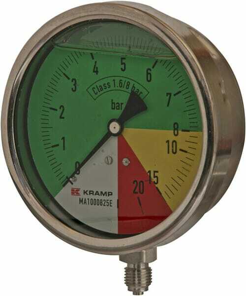 Manomètre Ø100 mm 0-5-20-25 1/4" BSP raccord vertical