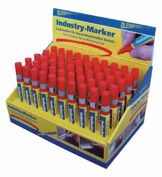 Caractéristiques : - Pointe utilisable des deux côtés - Pointe rouge - Épaisseur des lignes : 4 mm - Remplissage : 8,0 ml de peinture industrielle rouge