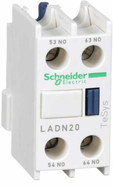 Tesys model D et F modules de contacts auxiliaires Nombre de contacts à deux directions : 0 Nombre de contacts normalement ouverts : 2 Nombre de contacts normalement fermés : 0 Nombre de commutateurs de signaux de défaut : 0 Courant nominal de fonctionnement Ie à AC-15, 230 V : 10 A Type de raccordement électrique : Connecteur à visser Modèle : À clipser Méthode de montage : Montage latéral Manufacturer Product ID : LADN20