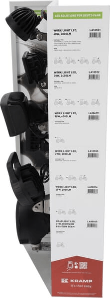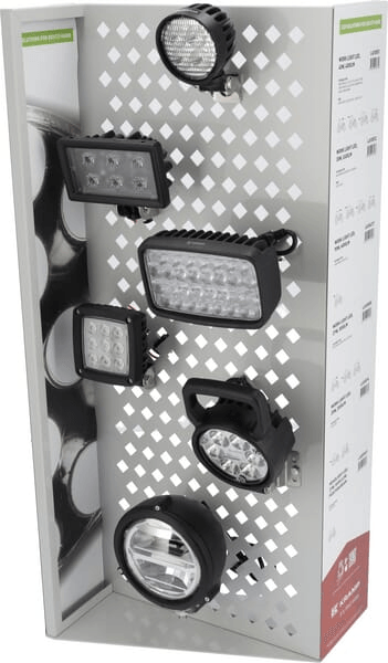 Ce présentoir de vente affiche tous les phares de travail pertinents pour la marque/série de votre tracteur.