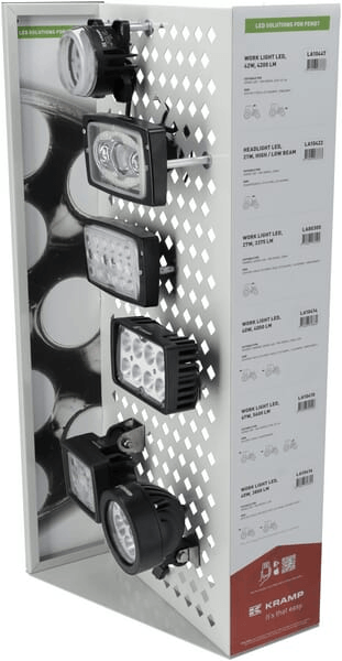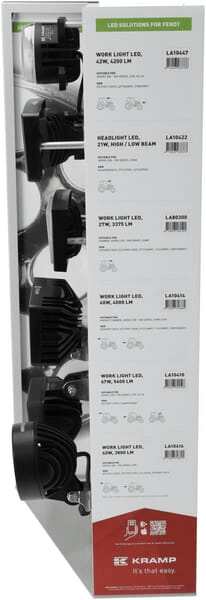 Ce présentoir de vente affiche tous les phares de travail pertinents pour la marque/série de votre tracteur.