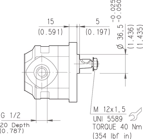 Longueur entre la bride et l'alésage central : 68.5 mm