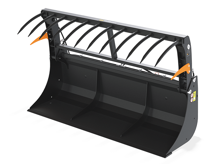 La benne multi services polyvalente pour les travaux dans l'exploitation agricole. Des caractéristiques spécifiques pour une utilisation avec chargeurs frontaux, chargeuses et télesco Disponible avec différents accessoires et crochets boulonnés type M16 L pour une parfaite adaptabili
