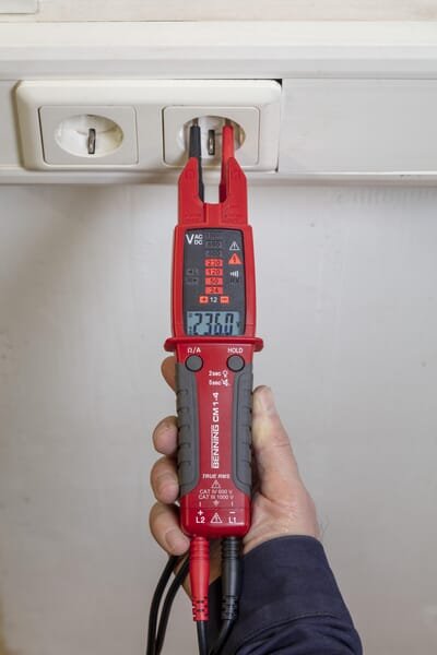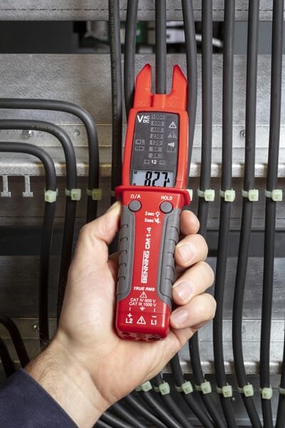 La sonde à pince numérique TRUE RMS convient à diverses tâches de mesure dans les secteurs de l'électrotechnique, de l'industrie et des services. Il comporte un indicateur LED indiquant la tension sur le système et des indicateurs LED pour la rotation de phase, le contrôle unipolaire du conducteur extérieur, le test de continuité et le test de polarité. Les sondes à pince sans True RMS mesurent des transitions pures et symétriques entre les pics et les creux, tandis qu'un appareil True RSM mesure également les charges à partir de modèles d'ondes non linéaires. Ceux-ci proviennent d'équipements tels que l'éclairage LED, les variateurs de fréquence, les commandes électroniques et les systèmes de chauffage, de ventilation et de climatisation. Les valeurs, mesurées au même endroit, avec et sans True RMS, peuvent donc différer et peuvent causer des dommages et des dysfonctionnements dans le système.
