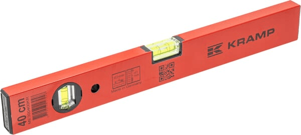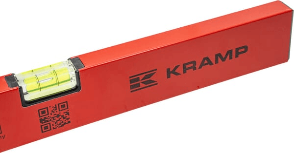 Niveaux à bulle Kramp avec bulle horizontale et verticale en forme de tonneau en verre acrylique incassable fixée collée dans le corps du niveau à bulle.