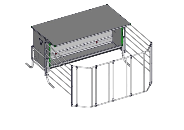 Nourrisseur Jourdain 2m70m, non monté, avec parc, trémie de 1180L, 5 passages pour les veaux, transport par 3 points.