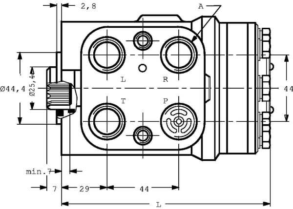 Informations techniques : - O est synonyme de « système ouvert » En position neutre, l'huile coule du raccord « P » (pompe) au raccord « R » (réservoir) - N » signifie « non réaction (pas de réaction » Les forces qui agissent de l'extérieur sur les roues ne sont pas transmises à la direction