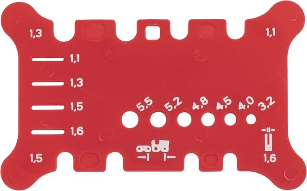 Outil de mesure pour mesurer le pas et la largeur de la chaîne, la largeur de la rainure de la lame de scie et la bonne taille de lime.