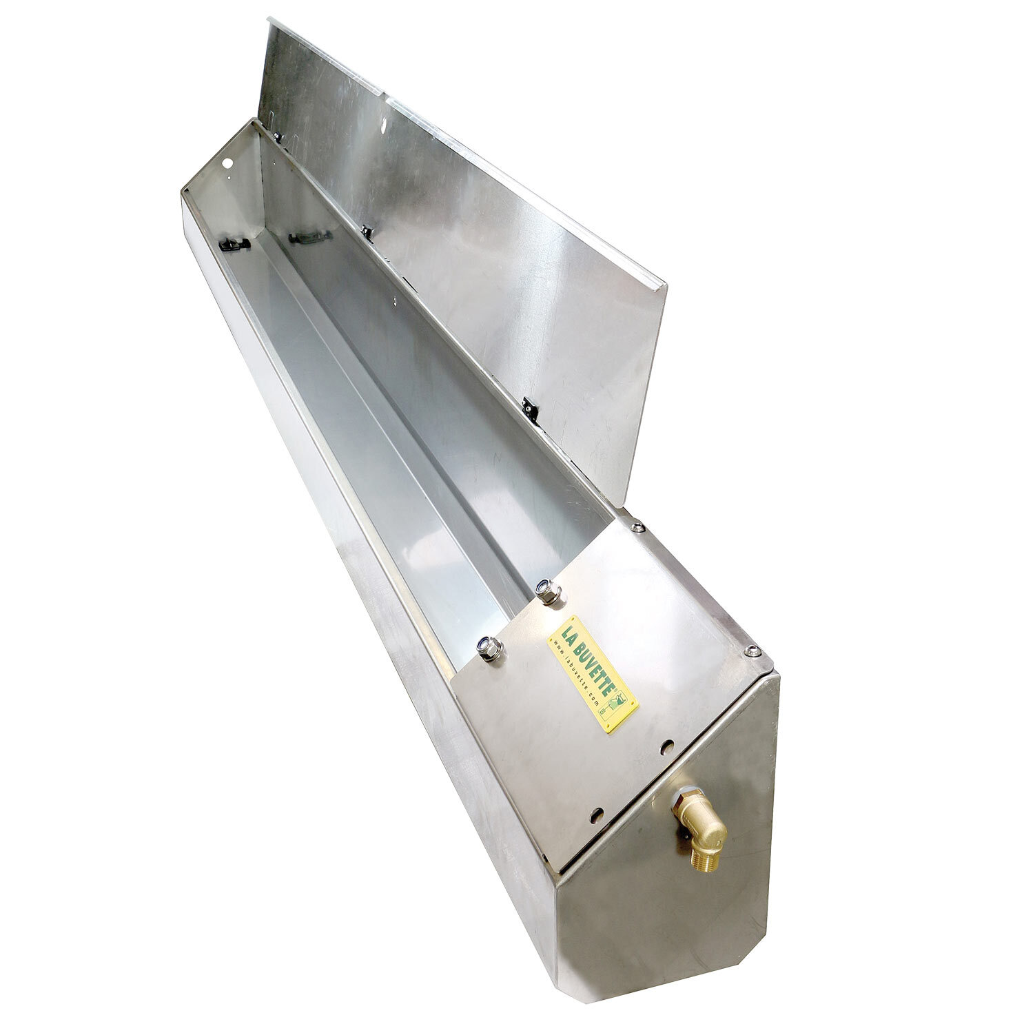 L'OVICAP INOX 240 est un abreuvoir mural long de 2,40 m fabriqué en acier inoxydable pour l'abreuvement des chèvres et des brebis en bâtiment et des porcs en plein air.
