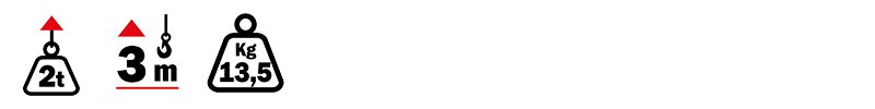 Capacité de charge 2 tonnes. Hauteur de levage 3 m.