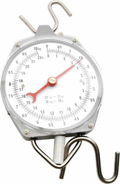 Particularités : Peson dynamométrique - Pour une estimation rapide d'un poids - Contrôle d'une quantité d'aliments - Fabrication robuste - Non utilisable pour les transactions commerciales - Stable - Avec crochet en haut et en bas - Aisément lisible