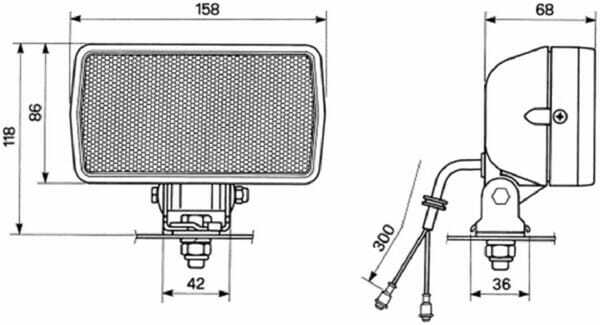 Application : Construction vehicle Position de montage : Bas Technologie d'ampoule : Halogène Type d'ampoule : H3 Longueur du câble : 0,3 m Fonction : Feu de travail Hauteur : 86 mm gauche / droite : gauche / droite Longueur (profondeur) : 68 mm Couleur de lumière : Blanc Type d'éclairage : Eclairage proche Référence d’origine : 05-315-000-03 Type de fiche : 2-pin Puissance : 55 W Réflecteur : Single Reflector Code SAP : 1015085 Forme : Rectangulaire Convient pour la marque de machine/véhicule : Universal Tension nominale : 12 V Largeur : 158 mm