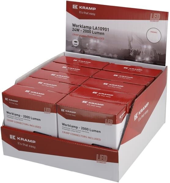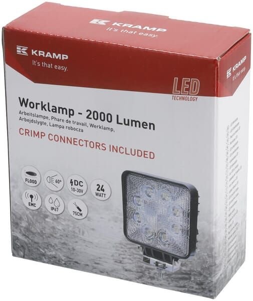 Phare de travail LED, 24W, 2000lm, carrée, blanche, 107x52x136mm, projecteur, Kramp (boîte de 10 pièces)