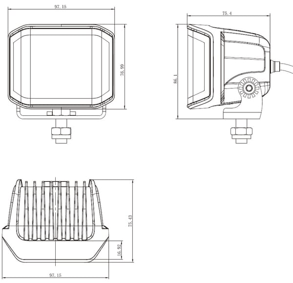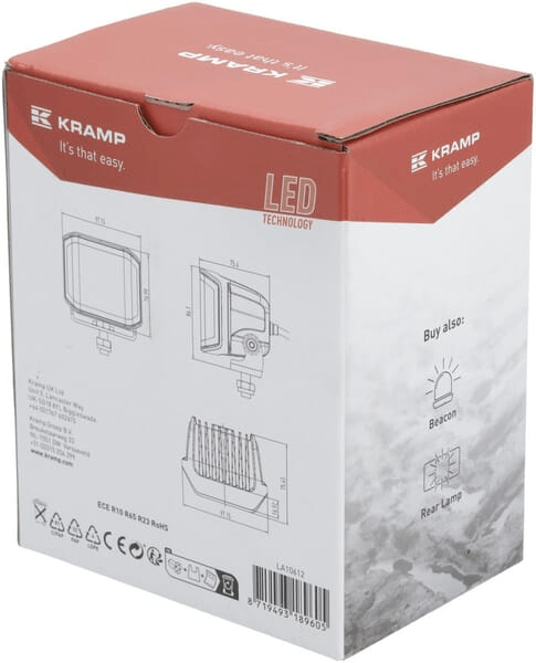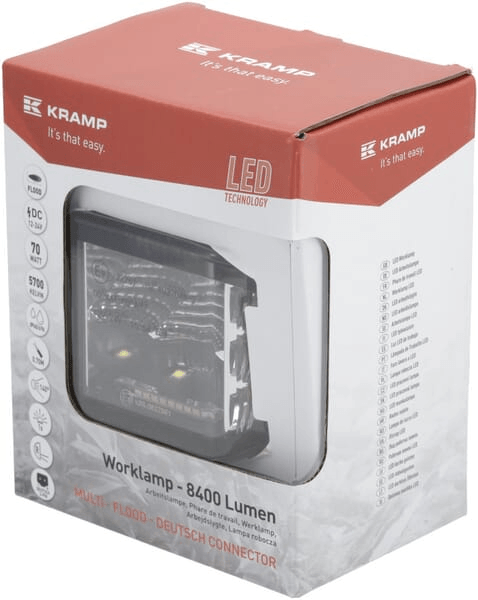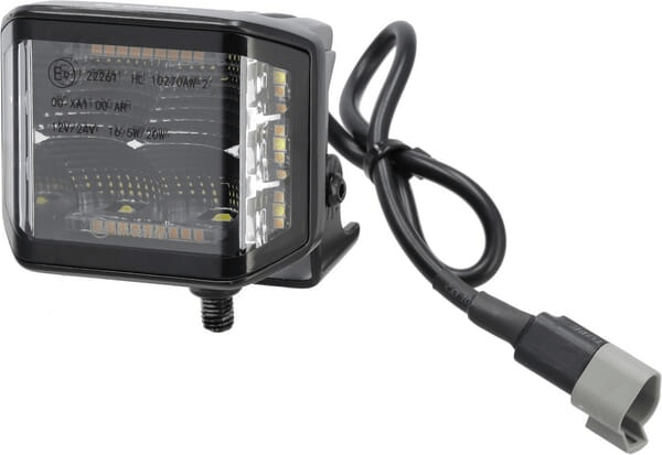 Phare de travail LED, 70W, 8400 lm, carré, 12/24V, blanc/orange, 97x77x75mm prise Deutsch, faisceau diffus, 10 LED