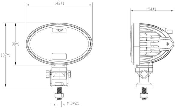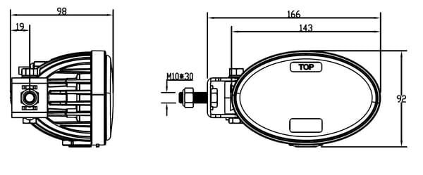 Phare LED, 20/24 W, ovale, 10/30 V, 166 x 98 x 98 mm, feux de route/croisement, câble ouvert à 3 broches, montage sur support