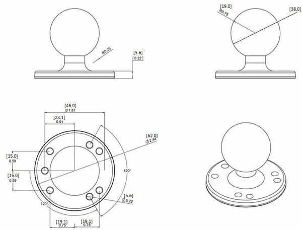 Détails du produit : - Diamètre de la boule C : 1,5'' (38,1 mm) RAM - Charge maximale admissible : 2,5Kg - Pièces en aluminium avec revêtement résistant - Les supports RAM, lorsqu'ils sont fabriqués à partir d'un alliage d'aluminium, ont une désignation de type d'article commençant par RAM (M pour ''Métal'')