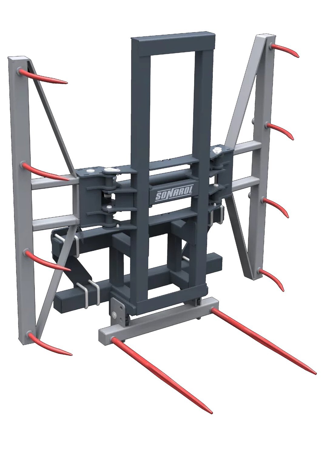 Pince à balles MC AGRI, capacité de charge 1200kg, largeur d'ouverture 2m00, 8 dents, piques bottes repliable, poids 330kg, attelage MX ou Euro