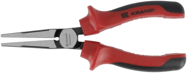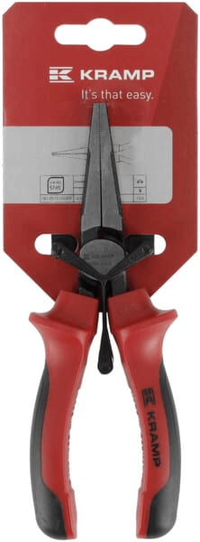 Pince à bec plat avec longues mâchoires plates et surfaces de saisie striées pour tenir et plier de petits objets. Cette longue pince à bec plat comporte des poignées ergonomiques antidérapantes bicomposant deux tons.