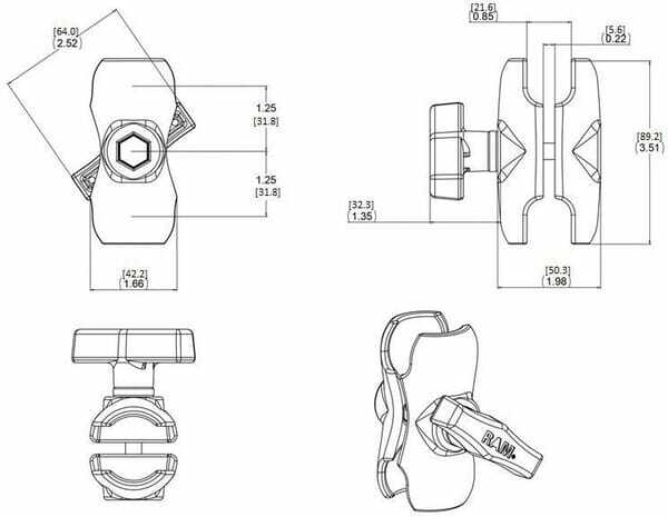 Détails du produit : - Diamètre de la boule C : 1,5'' (38,1 mm) RAM - Charge maximale admissible : 2,5Kg - Pièces en aluminium avec revêtement résistant - Les supports RAM, lorsqu'ils sont fabriqués à partir d'un alliage d'aluminium, ont une désignation de type d'article commençant par RAM (M pour ''Métal'')