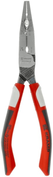 Détails du produit : - 1. Mâchoires moletées pour une saisie et une traction puissantes des fils et câbles - 2. Mâchoires crantées pour un guidage précis et un cintrage puissant - 3. Dénudée des conducteurs toronnés ou rigides (1,5 et 2,5 mm²) - 4. Sertissage des embouts (0,5 - 2,5 mm²) - 5.Precision coupe-fils fins, fils mi-durs et corde à piano - 6. Sertissage des connecteurs de câble (0,5 - 2,5 mm²) - 7. Poinçonnage et ébavurage des trous de passage des boîtes de jonction encastrées