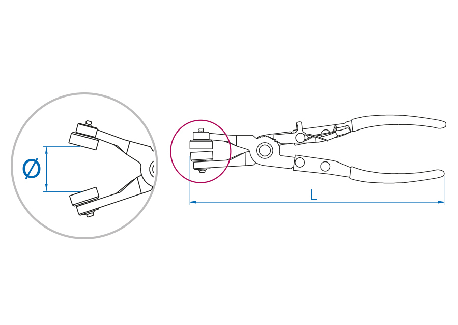 Pince pour colliers autoserrants inclinées à 45°