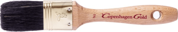 Brosse plate en poils de porc chinois noir, munie d'une virole en acier inoxydable et d'un manche en bois de hêtre ciré FSC. Ce pinceau convient aux peintures plus rigides, telles que les peintures à base de solvant et les peintures à faible teneur en COV.