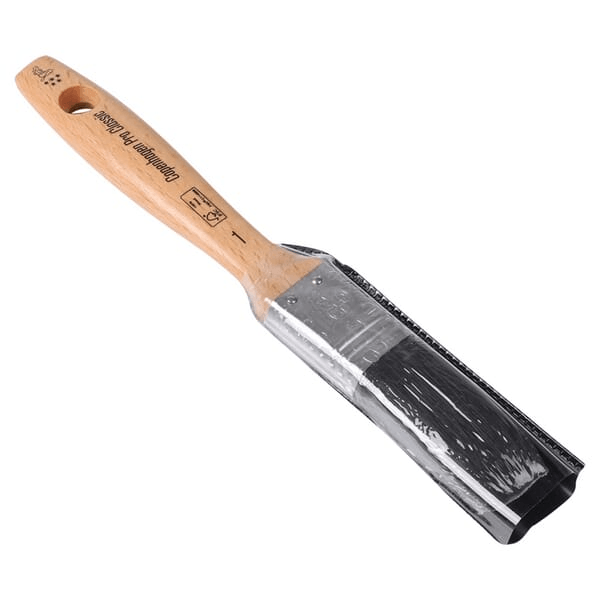 Brosse plate en poils de porc chinois noir, munie d'une virole en acier inoxydable et d'un manche en bois de hêtre ciré FSC. Ce pinceau convient aux peintures plus rigides, telles que les peintures à base de solvant et les peintures à faible teneur en COV.