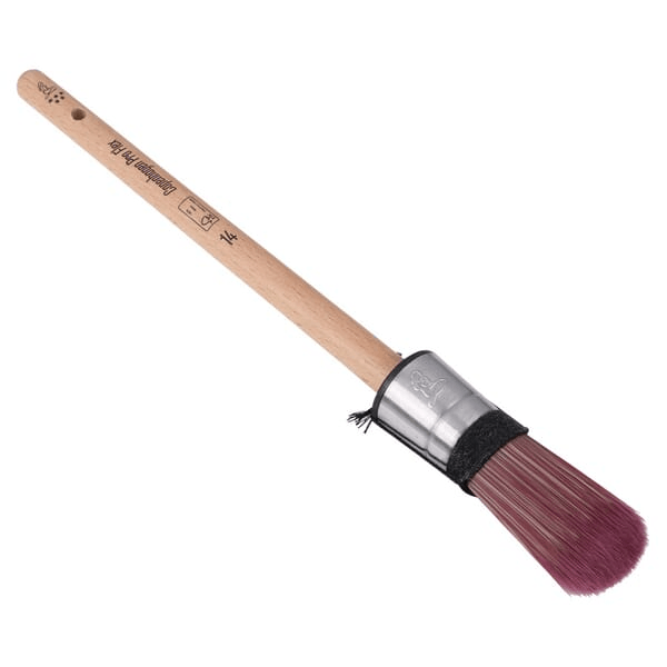 Brosse vernie pointue dont les poils sont constitués d'un mélange de fibres de polyester modifiées et très flexibles. Il est doté d'une virole en acier inoxydable, d'une bobine en coton et d'un manche ciré. Les poils du pinceau sont extra doux La pointe du pinceau est disposée de façon sphérique, ce qui en fait un outil idéal pour le travail de précision sur les petites surfaces, comme les cadres de fenêtres et les bords. Ce pinceau convient aux nouveaux types de peintures, comme les peintures à l'eau et les peintures à faible teneur en COV.