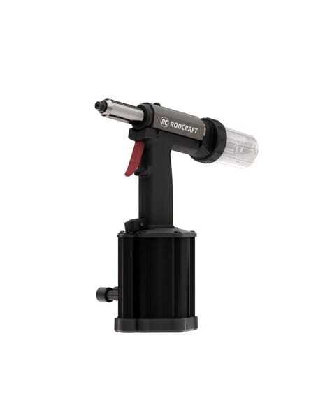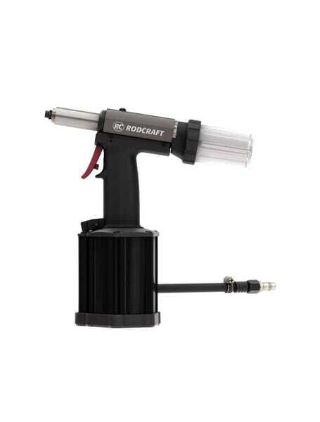 Riveteuse aveugle pneumatique industrielle pour le traitement de rivets aveugles en acier et en acier inoxydable jusqu'à cinq millimètres. Cette riveteuse aveugle Rodcraft est dotée d'une fonction d'aspiration intégrée qui permet de maintenir le rivet en toute sécurité avant d'appuyer sur la gâchette, ce qui est idéal pour les travaux verticaux.