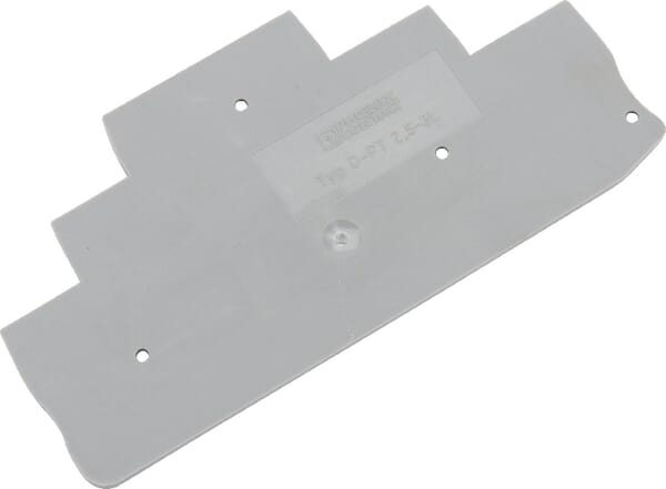 Couleur : Gris Modèle de plaque d'extrémité : Oui Classe d'inflammabilité du matériau isolant selon UL94 : V0 Modèle de partition : Non Snap in : Non Épaisseur : 2,2 mm Manufacturer Product ID : 3211647