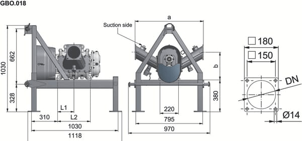 Pompe à lobes rot. FX116-360S + bâti
