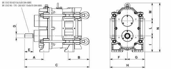 Caractéristiques : - La livraison des pompes de la série BR-EVO est disponible en trois versions : entraînement direct (D), entraînement par poulie (P) ou entraînement hydraulique (H) - Joints en carbure de tungstène placés entre le corps de pompe et la chambre intermédiaire - Plaques d'extrémité en acier interchangeables - Le rotor trilobé est conçu pour des hauteurs d'aspiration pouvant atteindre une colonne d'eau de 8 mètres - Les pompes volumétriques de type BR-EVO peuvent fonctionner en tournant à gauche tout comme à droite