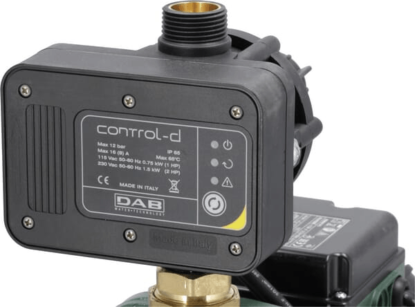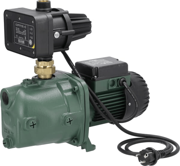 Les pompes centrifuges auto-amorçantes Jet sont particulièrement adaptées à l'alimentation en eau des installations domestiques et aux petites applications agricoles, dans les jardins, la petite industrie et partout où une pompe avec fonction auto-amorçante est nécessaire. La pompe a une excellente capacité d'aspiration, même s'il y a des bulles d'air dans l'eau. Le corps de la pompe est en fonte et la roue, le diffuseur, le tube venturi et l'injecteur sont en techno-polymère. Il convient pour le pompage d'eau à faible teneur en constituants sableux. Cette version Jet est équipée d'un dispositif CONTROL-D pour le contrôle et la protection des pompes domestiques sans réservoir à diaphragme. Ce CONTROL-D est doté d'un système intégré de mesure du débit et de la pression qui met automatiquement la pompe en marche lorsqu'un ou plusieurs robinets sont ouverts et l'arrête automatiquement lorsqu'un manque d'eau est mesuré. La pompe continuera à fonctionner tant qu'il y aura une consommation d'eau et que la pression de l'eau sera maintenue constante. La pompe s'arrête automatiquement après 10 secondes si tous les robinets sont fermés. S'il y a un manque d'eau, la pompe s'arrête et une LED rouge apparaît sur l'écran. La pompe peut être redémarrée à l'aide du bouton de réinitialisation.