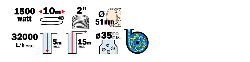 Puissance 1500w : Débit maxi 32m3/h.