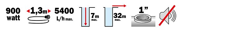Pompe à eau de surface multicellulaire 3 turbines auto-amorçante. Corps moteur en fonte d’aluminium. Corps de pompe en inox, avec base plastique. Arbre moteur en acier carbone type 45. 900 W. Pression 3,2 bars. Hauteur d’aspiration 7 m. Entrée/sortie 1“. Longueur câble électrique 1,3 m.