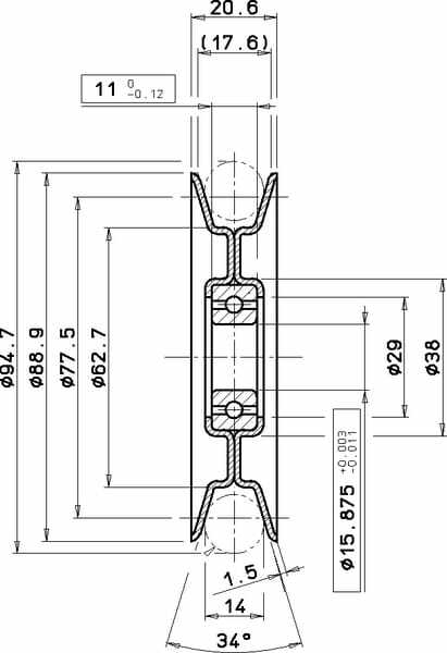 Poulie Ø88,9mm/trou central 15,875mm