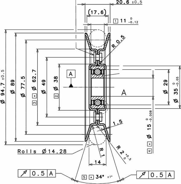 Poulie Ø89mm/trou central 15mm
