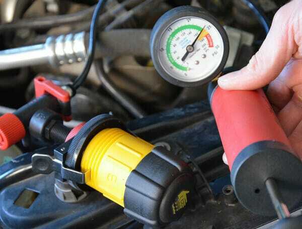 Testeur universel de système de refroidissement avec ballon gonflable pouvant être fixé à tous les véhicules de tourisme et utilitaires légers.