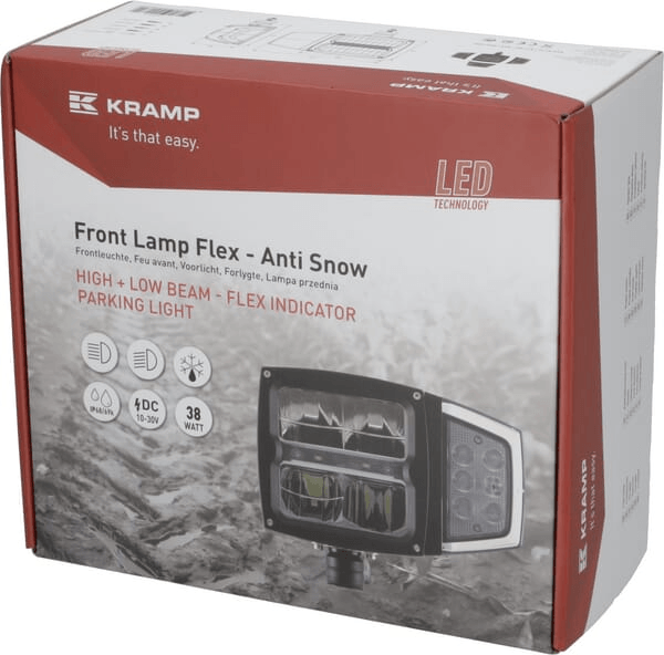 Projecteur LED, 38 W, rectangulaire, 12-24 V, 229x150x80 mm, chauffant, feux de route/feux de croisement, flex anti-snow, Kramp