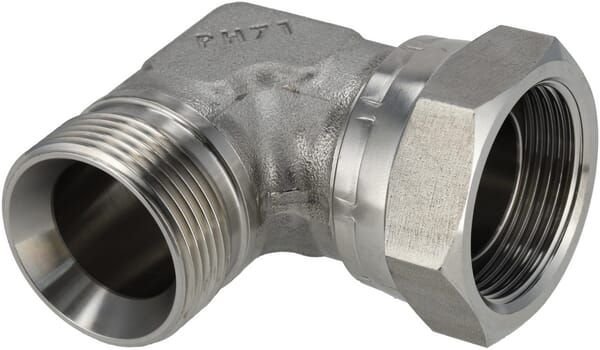 Forme : Coude 90° Type de raccord n°1 : Écrou tournant Type de raccord n°1 - mâle/femelle : Femelle Diamètre de filetage du raccord n°1 : 1-1/4 Inch Filetages au pouce du raccord n°1 : 11 Type de filetage du raccord n°1 : BSP Raccord n°1, taille de clé : 50.0 mm Angle du cône côté 1 : 60 ° Type de raccord n°2 : Filetage Type de raccord n°2 - mâle/femelle : Mâle Diamètre de filetage raccord n°2 : 1-1/4 Inch raccord n° 2 nombre de filet au pouce : 11 Type de filetage raccord n°2 : BSP Taille de clé de raccordement n°2 : 50.0 mm Matériau : Acier inoxydable Points forts : - Haute résistance à la corrosion - Résistant aux produits chimiques - Adapté aux températures extrêmes - Convient aux aliments - Durable Détails du produit : - Coude à 90° - Filetage mâle droit BSP, avec cône 60° - Ecrou-raccord BSP pré-assemblé avec cône 60° - Version compacte - Acier inoxydable : AISI 316 ti - Plage de température : -60°C à +400°C - Lors du montage de pièces en acier inoxydable, graissez les filetages avec de la graisse céramique, téflon ou graphite Comprend : - Raccord