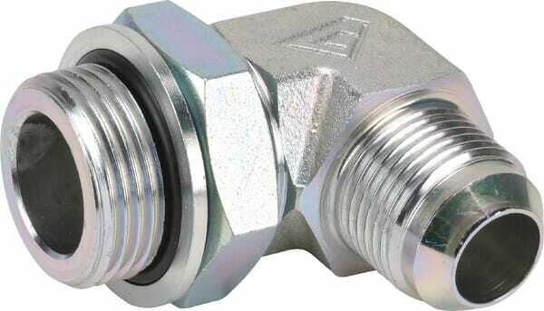 Forme : Coude Type de raccord n°1 : Filetage Type de raccord n°1 - mâle/femelle : Mâle Series connection 1 : n/a Diamètre raccord n°1 : 3/4 Inch Diamètre raccord n°1 : 14 mm Diamètre de filetage du raccord n°1 : 1-1/16 Inch Filetages au pouce du raccord n°1 : 11 Type de filetage du raccord n°1 : BSP Distance du centre à l’extrémité du raccord : 44,5 mm Type de raccord n°2 : Bague d’étanchéité Type de raccord n°2 - mâle/femelle : Mâle Diamètre de filetage raccord n°2 : 1 Inch raccord n° 2 nombre de filet au pouce : 12 Type de filetage raccord n°2 : JIC Distance des raccords : 52 mm Angle du cône : 74 ° Matériau : Acier Traitement de surface : Galvanisé Pression de service maximale : 190 bar Raccordement : Filetage UNF (JIC) / BSP dB(A) Matériau : Acier Traîtement de surface : Zingué, livrable sur demande en inox Informations techniques : Pour tube de 37° (74°) aux extrémités mandrinées et tuyau avec raccordement UNF / JIC selon SAE I 514. Filetage de raccordement au côté du cône 37° est UNF selon ANSI