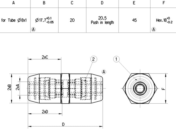 Raccord n°1, taille de clé : 18.0 mm