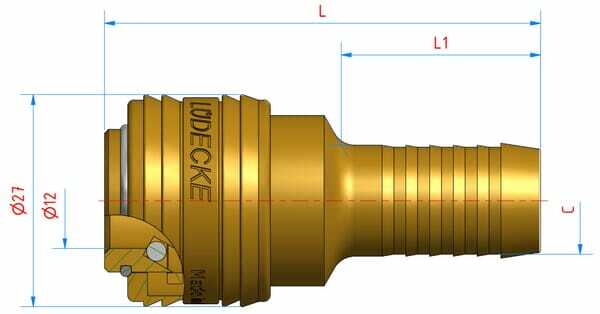 Forme : Droit Type de raccord n°1 : Raccord rapide Type de raccord n°1 - mâle/femelle : Femelle Diamètre raccord n°1 : 7,2 mm Longueur du filetage du raccord n°1 : 24 mm Type de raccord n°2 : Extrémité de tuyau Type de raccord n°2 - mâle/femelle : Mâle Diamètre du raccord n°2 : 9 mm Conçu pour les moyennes : Air Longueur totale : 55 mm Matériau : Laiton Pression de service maximale : 35 bar Température de service maximale : 100 °C Température de service min. : -20 °C Poids : 68 gr