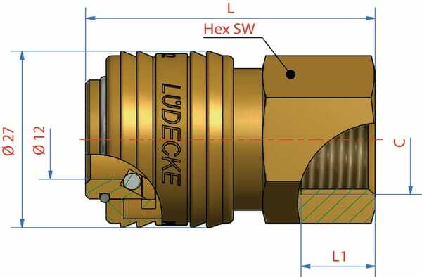 Forme : Droit Type de raccord n°1 : Raccord rapide Type de raccord n°1 - mâle/femelle : Femelle Type de raccord n°2 : Filetage Type de raccord n°2 - mâle/femelle : Femelle Diamètre de filetage raccord n°2 : 1/8 Inch Longueur de filetage raccord n°2 : 9 mm Type de filetage raccord n°2 : BSP Taille de clé de raccordement n°2 : 22.0 mm Raccordable sous pression : Oui Conçu pour les moyennes : Air Norme ISO : 228 Longueur totale : 39 mm Matériau : Laiton Pression de service maximale : 35 bar Température de service maximale : 100 °C Température de service min. : -20 °C Matériau d'étanchéité : Caoutchouc nitrile [NBR] Poids : 90 gr Interchangeable avec : Festo