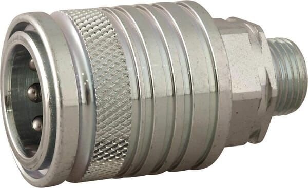 Caractéristiques : - Couplage standard dans l'agriculture - Principe Push-Pull - Couplage/découplage rapide - Blocage bilatéral - Actionnement axial de la douille de verrouillage dans les deux directions (double effet)
