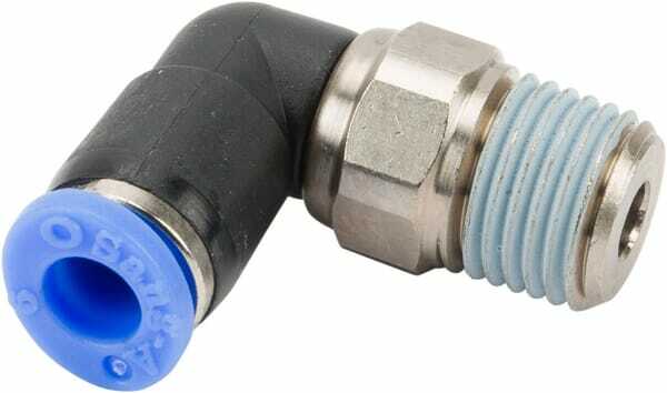 Raccord enfichable tournant coudé, filet mâle avec six pans extérieur QSRL-..-..