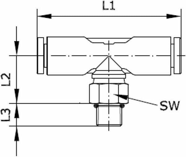 Raccord enfichable union en T, filet mâle orientable avec six pans extérieur, mini QSMT-B-..-..