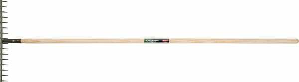 Informations techniques : Râteau de jardin avec manche en frêne ·Pour préparation du sol pour semer, pour rateler les graines dans le sol, pour ramasser des déchets et pour aérer le sol ·Dents d'acier, laquées en gris